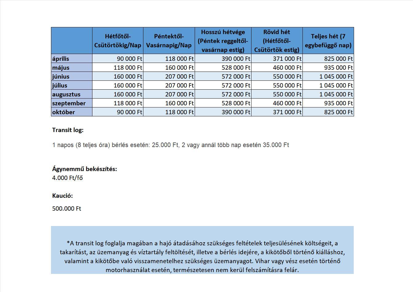 Ez a modern, kényelmes és könnyen kezelhető vitorlás ideális választás mindazok számára, akik prémium élményre vágynak a magyar tengeren. Letisztult vonalai, tágas fedélzete és kiváló menettulajdonságai miatt igazán élvezetes vele a vitorlázás – legyen szó családi nyaralásról vagy baráti kalandról.